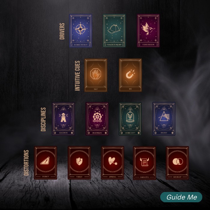These are reflexive protective patterns that mimic intuition when pressure rises. They compress awareness and redirect attention, producing urgency, defensiveness, overreach, rigid interpretation, or approval-seeking that feels justified. Their presence signals that perception has shifted and a corrective practice is required.