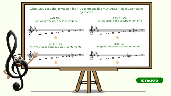Observa y escucha cómo son los 4 tipos de escalas MENORES y después haz los ejercicios: