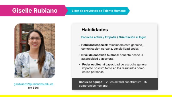 - Habilidad especial: relacionamiento genuino, comunicación cercana, sensibilidad social.