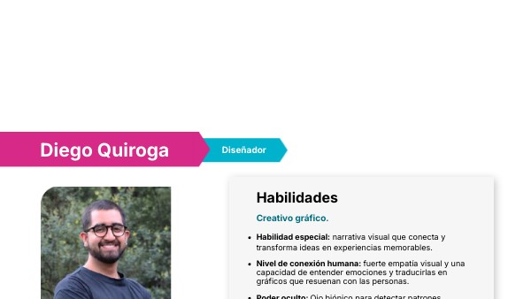 - Habilidad especial: narrativa visual que conecta y transforma ideas en experiencias memorables.