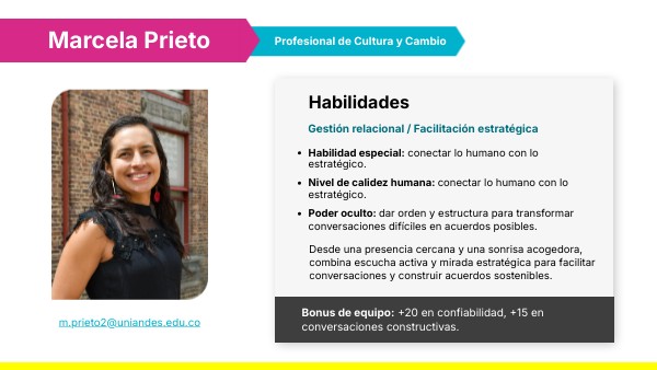 - Habilidad especial: conectar lo humano con lo estratégico.