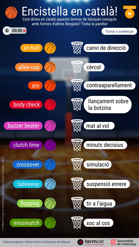 Com diries en català aquests termes de bàsquet coneguts amb formes d’altres llengües? Troba la parella!
