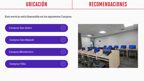 Si harás uso de las iMacs, las computadoras no cuentan con audífonos, por lo que, en caso necesitara, deberá traer uno que tenga entrada de 3,5 mm. La Sala RED del Campus Villa no cuenta con iMacs.