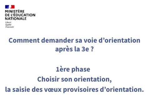 Comment demander sa voie d’orientation après la 3e ? 1ère phase Choisir son orientation, la saisie des vœux provisoires d’orientation.