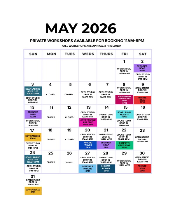 PRIVATE WORKSHOPS AVAILABLE FOR BOOKING 11AM-8PM