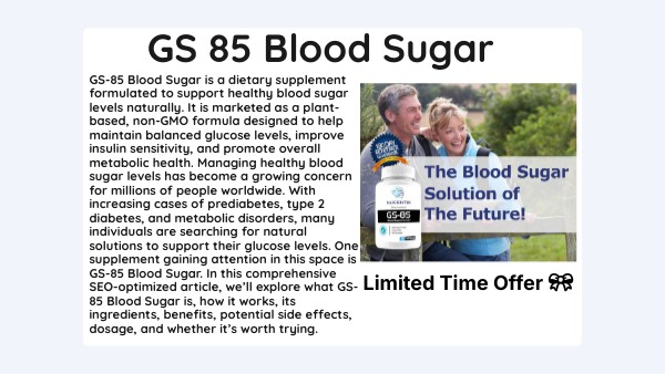 GS-85 Blood Sugar is a dietary supplement formulated to support healthy blood sugar levels naturally. It is marketed as a plant-based, non-GMO formula designed to help maintain balanced glucose levels, improve insulin sensitivity, and promote overall metabolic health. Managing healthy blood sugar levels has become a growing concern for millions of people worldwide. With increasing cases of prediabetes, type 2 diabetes, and metabolic disorders, many individuals are searching for natural solutions to support their glucose levels. One supplement gaining attention in this space is GS-85 Blood Sugar. In this comprehensive SEO-optimized article, we’ll explore what GS-85 Blood Sugar is, how it works, its ingredients, benefits, potential side effects, dosage, and whether it’s worth trying.
