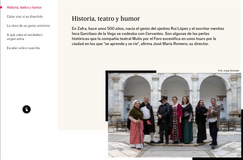 En Zafra, hace unos 500 años, nacía el genio del ajedrez Rui López y el escritor mestizo Inca Garcilaso de la Vega se codeaba con Cervantes. Son algunas de las perlas históricas que la compañía teatral Mutis por el Foro escenifica en unos tours por la ciudad en los que “se aprende y se ríe”, afirma José María Romero, su director.