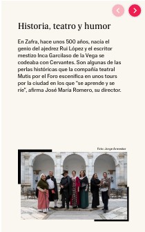 En Zafra, hace unos 500 años, nacía el genio del ajedrez Rui López y el escritor mestizo Inca Garcilaso de la Vega se codeaba con Cervantes. Son algunas de las perlas históricas que la compañía teatral Mutis por el Foro escenifica en unos tours por la ciudad en los que “se aprende y se ríe”, afirma José María Romero, su director.
