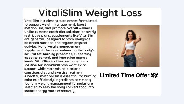 VitaliSlim is a dietary supplement formulated to support weight management, boost metabolism, and promote overall wellness. Unlike extreme crash-diet solutions or overly restrictive plans, supplements like VitaliSlim are generally designed to work alongside balanced nutrition and regular physical activity. Many weight management supplements focus on enhancing the body’s natural fat-burning processes, supporting appetite control, and improving energy levels. VitaliSlim is often positioned as a solution for individuals who want extra support while maintaining a calorie-conscious diet and exercise regimen. A healthy metabolism is essential for burning calories efficiently. Ingredients commonly found in weight management formulas are selected to help the body convert food into usable energy more effectively.