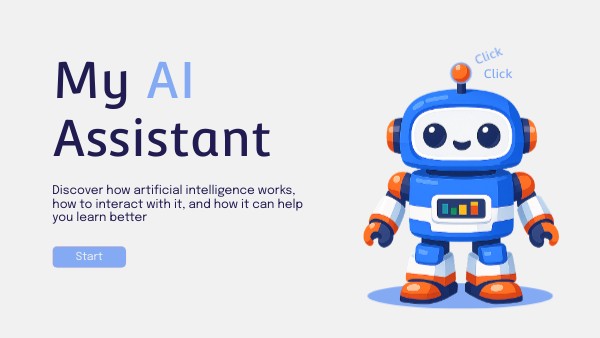 Discover what an Artificial Intelligence assistant is, how it works, and how it can help you learn better. Explore key concepts through interactive questions and learn to interact with AI in a simple and practical way.