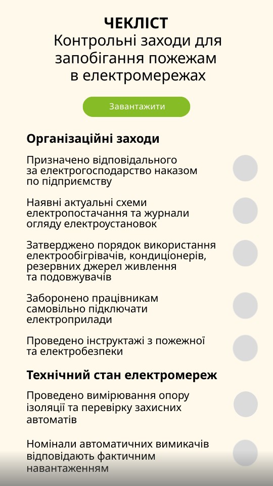 Чекліст_Контрольні заходи для запобігання пожежам в електромережах