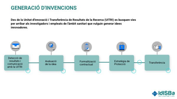 L'IdISBa considera resultat d'innovació qualsevol coneixement, tecnologia, procediment o eina amb possible aplicació pràctica en salut o interès per a l'entorn socioeconòmic. L'equip investigador ha de comunicar el resultat identificat com més aviat millor a la UITRI, preferiblement abans de qualsevol publicació o difusió a la societat, a través dels canals habilitats (formulari, correu o contacte telefònic). La UITRI ajudarà a descriure el resultat, la seva maduresa i el problema que resol, i orientarà des de l'inici sobre les possibles estratègies de protecció i transferència.