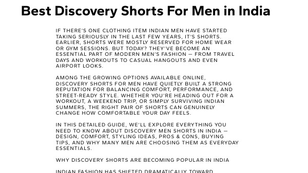 If there’s one clothing item Indian men have started taking seriously in the last few years, it’s shorts. Earlier, shorts were mostly reserved for home wear or gym sessions. But today? They’ve become an essential part of modern men’s fashion — from travel days and workouts to casual hangouts and even airport looks. Among the growing options available online, Discovery Shorts for Men have quietly built a strong reputation for balancing comfort, performance, and street-ready style. Whether you’re heading out for a workout, a weekend trip, or simply surviving Indian summers, the right pair of shorts can genuinely change how comfortable your day feels. In this detailed guide, we’ll explore everything you need to know about Discovery Men Shorts in India — design, comfort, styling ideas, pros & cons, buying tips, and why many men are choosing them as everyday essentials. Why Discovery Shorts Are Becoming Popular in India Indian fashion has shifted dramatically toward functional casualwear. Men now want clothing that works across multiple situations instead of separate outfits for every activity. Discovery shorts fit perfectly into this lifestyle shift. Here’s why they’re getting attention: Hot Indian climate demands breathable clothing Athleisure fashion is dominating daily wear Work-from-home culture increased comfort-first dressing Travel & fitness culture is booming Men prefer versatile outfits over formal clothing Instead of traditional loose cotton shorts, modern designs now combine sports performance + urban styling — and that’s exactly where Discovery Shorts stand out. What Makes Discovery Shorts Different? Not all shorts are created equal. Some are great for workouts but look too sporty outside. Others look stylish but feel uncomfortable after a few hours. Discovery Shorts try to solve this problem by combining three core elements: 1. Performance-Based Fabric Most Discovery shorts are designed using lightweight materials that allow airflow. This becomes extremely important in Indian weather conditions where humidity and heat can make heavy clothing unbearable. You’ll typically notice: Breathable fabric Sweat-friendly construction Quick-drying performance Stretch flexibility Whether you’re walking outdoors or training indoors, the fabric moves with your body instead of restricting it. 2. Everyday Comfort Fit One thing men often overlook while buying shorts is fit. Discovery shorts usually avoid extremes: Not overly tight like compression wear Not excessively loose like traditional lounge shorts This balanced fit makes them wearable for: Gym sessions Travel days Casual outings Daily home wear Basically, you can wear the same shorts from morning to evening without feeling overdressed or underdressed. 3. Minimal Yet Premium Styling Modern Indian men prefer clean designs over loud branding. Discovery shorts follow a minimal aesthetic: Neutral color tones Clean stitching Functional pockets Athletic silhouette The result? Shorts that look premium without trying too hard. Fabric & Comfort: Built for Indian Summers Let’s be honest — Indian summers test clothing more than anything else. Discovery shorts focus heavily on wearability in warm weather. Breathability The lightweight structure allows airflow, preventing that uncomfortable sticky feeling after long wear. Sweat Management Moisture-wicking properties help keep you dry during: Gym workouts Outdoor walks Travel journeys Daily errands Stretch & Movement Whether you’re squatting at the gym or sitting cross-legged at home, stretch fabric improves freedom of movement. Many users notice that once they switch to performance-style shorts, going back to regular cotton shorts feels restrictive. When Can You Wear Discovery Shorts? One of the biggest advantages is versatility. ✔ Gym & Training Perfect for: Strength training Running Functional workouts Yoga sessions ✔ Casual Daily Wear Pair with a basic T-shirt or oversized tee for a relaxed everyday look. ✔ Travel & Airport Outfits Comfort matters most during travel. Lightweight shorts reduce fatigue and keep you comfortable during long journeys. ✔ Weekend Outings Add sneakers and a casual shirt, and you instantly get a smart relaxed outfit. ✔ Home & Lounge Wear Soft feel + relaxed fit = ideal for working from home or relaxing. Styling Discovery Shorts – Simple Outfit Ideas Many men struggle with styling shorts beyond gym looks. Here are easy combinations that work in India: 1. Athleisure Look Discovery Shorts Oversized T-shirt Running shoes Sports watch Perfect for gym or coffee runs. 2. Casual Summer Look Solid color shorts Cotton polo or plain tee White sneakers Clean, effortless style. 3. Travel Comfort Fit Neutral shorts Hoodie or lightweight jacket Slip-on sneakers Ideal for flights or road trips. 4. Streetwear Style Relaxed fit shorts Graphic T-shirt Chunky sneakers Young, urban aesthetic. Key Features to Expect in Discovery Men Shorts Here’s what buyers generally appreciate: Lightweight performance fabric Elastic waistband with secure fit Deep functional pockets Durable stitching Minimal branding design Comfortable length above knee Easy maintenance & quick washing These small details make a big difference in daily use. Pros & Cons of Discovery Shorts ✅ Pros Extremely comfortable for Indian climate Multi-purpose usage (gym + casual) Modern stylish appearance Breathable and flexible fabric Easy to style with multiple outfits Travel-friendly and lightweight ❌ Cons Premium feel may come at slightly higher price than basic shorts Minimal designs may not appeal to people who prefer loud patterns Limited formal usage (as expected with shorts) Overall, the advantages easily outweigh the limitations for most users. How to Choose the Right Discovery Shorts Before buying, keep these tips in mind: 1. Select Correct Length Above-knee length usually looks more modern and athletic. 2. Choose Neutral Colors First Start with: Black Grey Olive Navy They matc