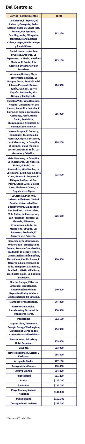 Tarifas de taxis 2026