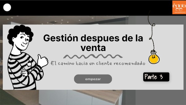 Ya tienes la TERCERA parte de "Gestión después de la venta". Aventúrate a la última parte para completar el módulo completo.