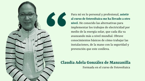 Para mí en lo personal y profesional, asistir al curso de fotovoltaica me ha llevado a otro nivel. He conocido las alternativas para implementar los trabajos de electricidad por medio de la energía solar, que cada día va avanzando más a nivel mundial. Obtuve conocimientos básicos de cómo trabajar las instalaciones, de la mano con la seguridad y prevención que este conlleva.