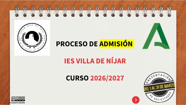 PROCESO DE ADMISIÓN IES VILLA DE NÍJAR CURSO 2026/2027