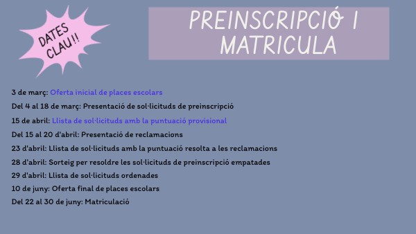 PREINSCRIPCIÓ I MATRICULA