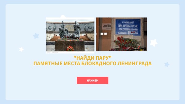 "Найди пару" памятные места блокадного Ленинграда