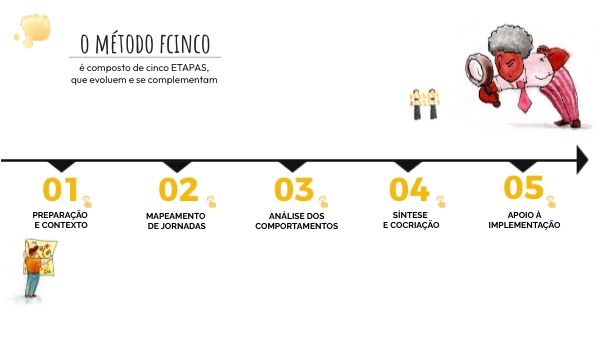 Nesta etapa, os objetivos são identificar a jornada planejada pela equipe responsável pelo serviço e entender as jornadas individuais de usuários reais, por meio de observação e entrevistas.