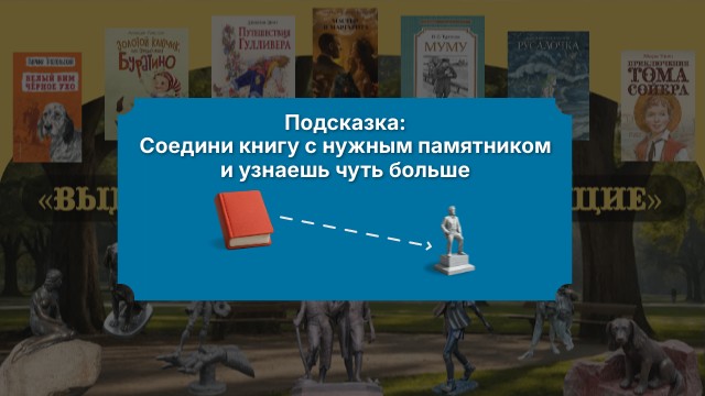 Подсказка: Соедини книгу с нужным памятником и узнаешь чуть больше