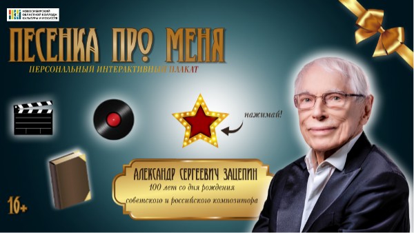 В честь этого события библиотека НОККиИ подготовила персональный интерактивный библиографический плакат "Песенка про меня", в котором Вы сможете найти биографию музыканта, книги о его жизни, ноты произведений, которые можно взять у нас в библиотеке, а также сборник видеоматериалов о нем.