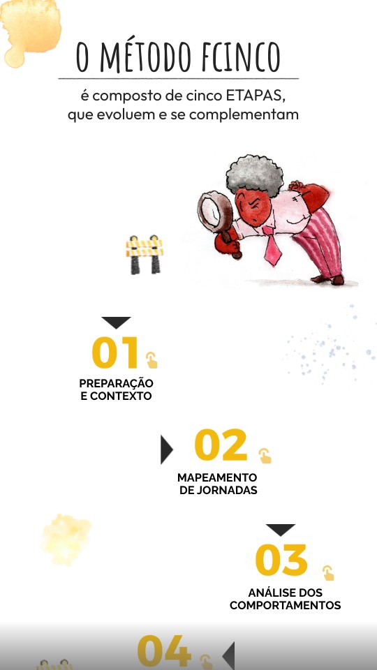 Aqui começa a fase analítica, a partir do que foi registrado no mapeamento das jornadas. Esta etapa tem como objetivo analisar os comportamentos para identificar e dimensionar barreiras na interação da pessoa usuária ao acessar o serviço. Também serão analisados os impactos dessas barreiras, segundo critérios relacionados às suas emoções, sobrecarga mental, desvios e interrupção da jornada, se houver.
