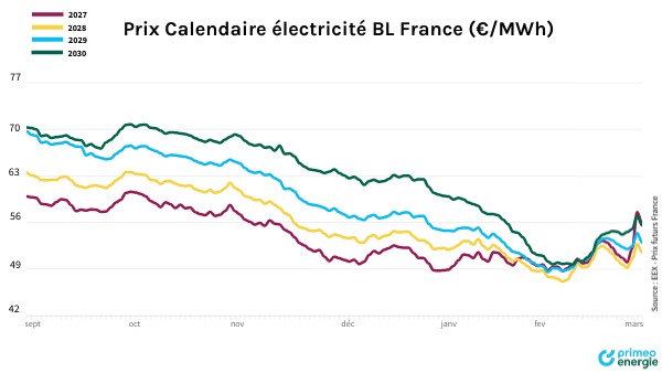 Prix Calendaire électricité BL France (€/MWh)