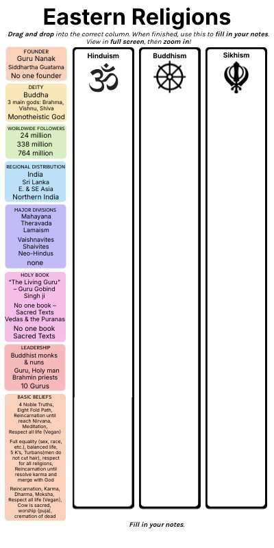 Drag and drop into the correct column. When finished, use this to fill in your notes. View in full screen, then zoom in!