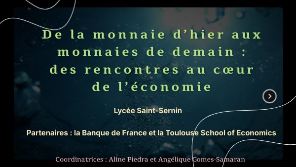Dans le cadre de leur formation en Sciences Economiques et Sociales, des élèves de première ont participé à deux rencontres consacrées à l’évolution de la monnaie. La première, organisée avec la Banque de France, portait sur les différentes formes de la monnaie ainsi que sur les missions d’une banque centrale. La seconde, à la Toulouse School of Economics, a permis d’aborder les cryptomonnaies et le fonctionnement du Bitcoin. Ces échanges ont offert aux élèves un éclairage concret sur des enjeux économiques contemporains tout en contribuant à leur réflexion sur l’orientation vers l’enseignement supérieur.
