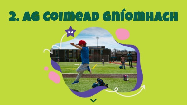 Is féidir leat úsáid a bhaint as gníomhaíochtaí cosúil le rith, scipeáil, léimneach, nó cluichí le liathróid.