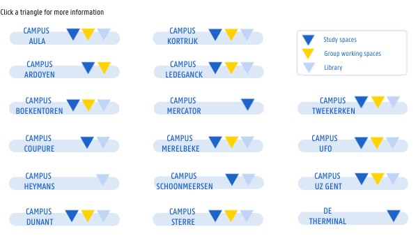 During examination periods the Therminal building (Hoveniersberg 24; in between campus UFO and campus Tweekerken) offers up to 200 study spaces. You have to reserve your spot in advance. Opening hours: monday-sunday, 8:30 - 24:00
