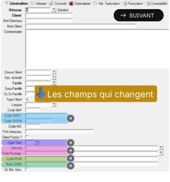 Ce champ permet de typer le client. Si c'est un professionnel, il faudra remplir obligatoirement le SIREN et le SIRET.