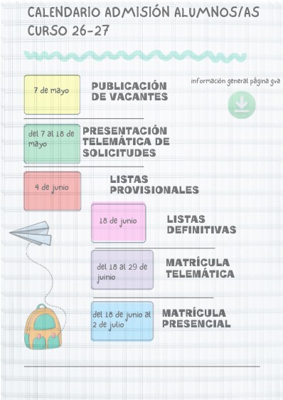 CALENDARIO ADMISIÓN ALUMNOS/AS CURSO 26-27