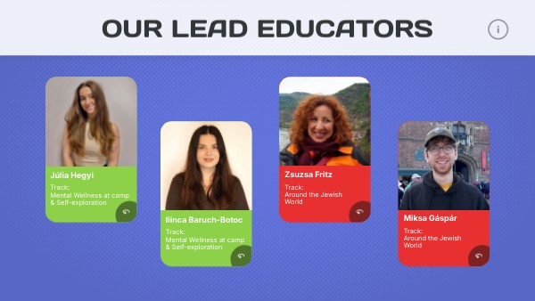 Zsuzsa is a trained teacher and a Jewish informal educator. Some call her Fritzi, others call her Zsuzsa. She has been involved with Szarvas Camp since its gates first opened and today serves as an educational consultant to the camp. She is also the coordinator of the Jewish Knowledge Center at JCC Budapest – Bálint Ház in Hungary.