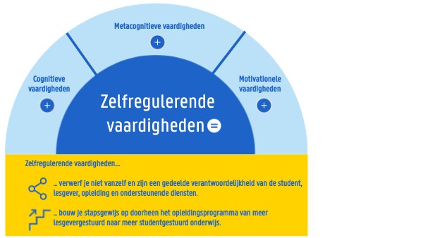 Self-regulation skills.... ... are not acquired unassisted and are a shared responsibility of the student, the lecturers, the study programme, and Ghent University's support services. ... require a gradual build-up within the curriculum, moving from a learning process regulated by the lecturer to one regulated by the student