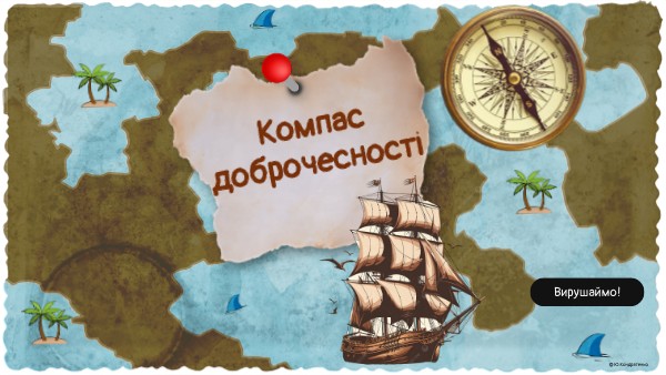 Ласкаво просимо до інтерактивної подорожі «Компас доброчесності».Перед тобою п’ять островів, кожен із яких відкриває різні сторони чесності: щоденні рішення, медіаграмотність, цифрову державу, академічну доброчесність та історії людей, які прославляють Україну. Обирай рівень, досліджуй ситуації, приймай рішення та перевір, чи правильно працює твій компас цінностей. Пройди всі острови, щоб отримати звання «доброчесного громадянина».