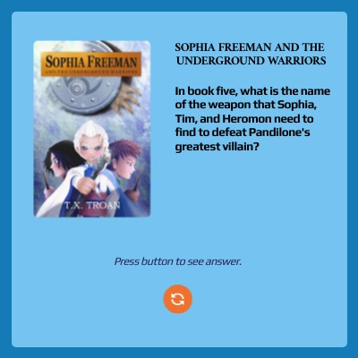 In book five, what is the name of the weapon that Sophia, Tim, and Heromon need to find to defeat Pandilone's greatest villain?