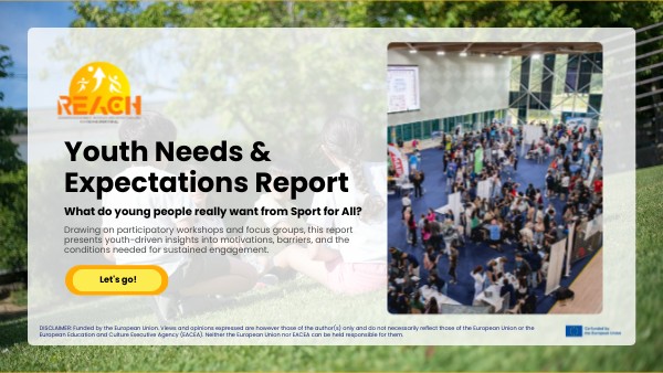 Across Europe, Sport for All organisations are facing increasing challenges in attracting and retaining young volunteers. Shifting societal expectations, competing life demands, and limited recognition or structured support, particularly at grassroots level are key barriers. Through participatory workshops with 65 young volunteers, the REACH project explored: This report reflects their perspectives.