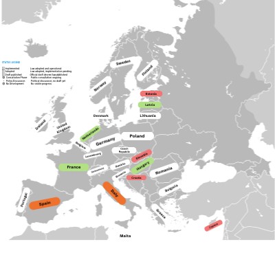 STATUS LEGEND 🟢 Implemented Law adopted and operational 🟡 Adopted Law adopted, implementation pending 🟠 Draft published Official draft decree/law published 🔵 Consultation Phase Public consultation ongoing
