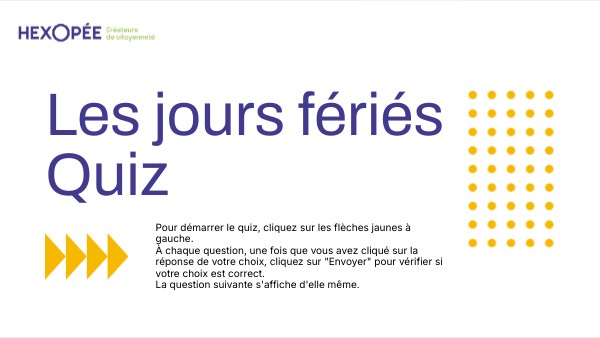 Quiz terminé.Merci pour votre participation Retrouvez plus d'éléments sur les jours fériés dans notre Zoom spécial jours fériés