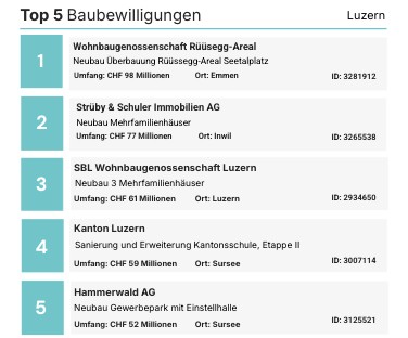 Top 5 Baubewilligungen