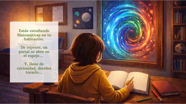 Estás a estudar Matemática no teu quarto. De repente, abre-se um portal no espelho... E, cheio de curiosidade, decides tocá-lo...