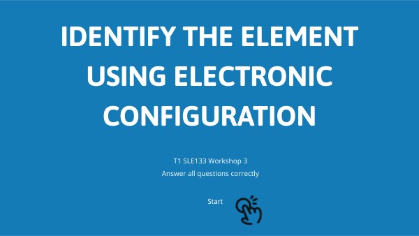 Instructions When typing the elemnt name as the password Type using lowercase letters When typing the electronic configuration as the password, Do not superscript, Keep a space eg. 1s2 2s2 or [Xe] 6s1