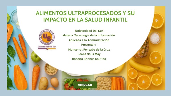 • Los ultraprocesados afectan la salud infantil • Su consumo debe ser moderado • La familia juega un papel clave • Es importante fomentar hábitos saludables
