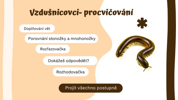 Porovnej obrázky stonožky a mnohonožky - použij posuvníky uprostřed.
