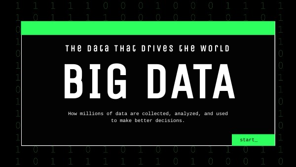 Educational resource template to explain what Big Data is and how data drives decisions in companies and organizations. Ideal for e-learning and higher education, it allows presenting key concepts clearly, visually, and structured.