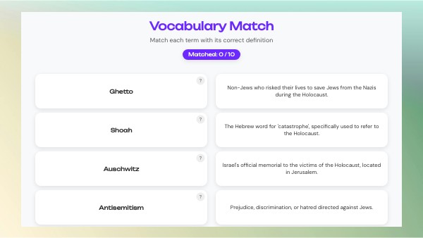 Holocaust Vocabulary Match - Level B2