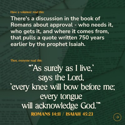 There's a discussion in the book of Romans about approval - who needs it, who gets it, and where it comes from, that pulls a quote written 750 years earlier by the prophet Isaiah.
