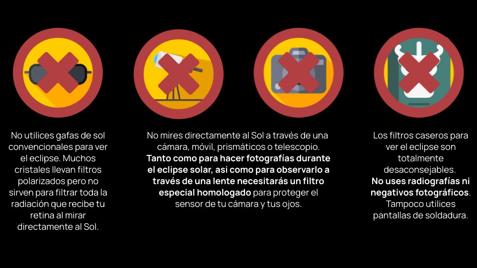 Los filtros caseros para ver el eclipse son totalmente desaconsejables. No uses radiografías ni negativos fotográficos. Tampoco utilices pantallas de soldadura.
